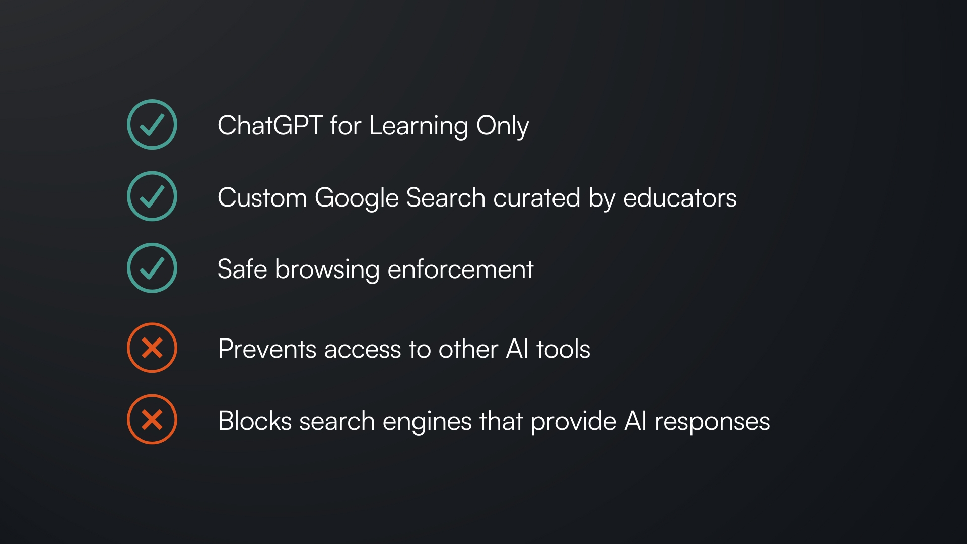 AI Education Mode operates in a "locked down" Chrome browser, which enforces policies that prevent workarounds and the use of other AI tools.